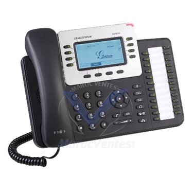 4 touches ligne bicolores (à 4 comptes SIP), 3 touches XML programmables (soft-keys), conférence à 5 et jusqu'à 11 call appearances avec 24 touches d'extension BLF bicolores