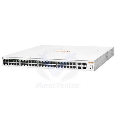 Géré L2+ Gestion basée sur le webQualité de service (QoS)Quantité de ports Ethernet RJ-45 de commutation de base: 48Soutien 10G 10BASE-T, 100BASE-TX, 1000BASE-TRépertoire MAC: 16000 entrées Capacité de commutation: 176 Gbit/s1U Grille de montageBloc d'alimentation inclus Connexion Ethernet, supportant l'alimentation via ce port (PoE)Les commutateurs HPE Networking Instant On 1930 sont des commutateurs Gigabit à gestion intelligente et configuration fixe avancées, conçus pour les petites entreprises. Ils sont faciles à déployer et restent abordables et permettent de gérer aisément les applications gourmandes en bande. passante.Commutateurs de couche d’accès hautes performances