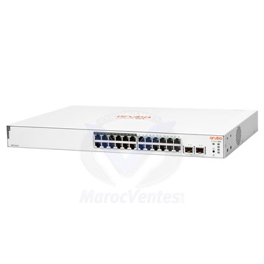 - La gamme de commutateurs Aruba Instant On 1830 est une gamme de commutateurs Ethernet de couche 2 bénéficiant d’une gestion intelligente prête à déployer dans six modèles comprenant des modèles de 8, 24 et 24 à 48 ports pour les modèles POE et 4 POE.- Deux (2) et quatre (4) ports fibre 1G SFP dédiés sur les modèles 24 et 48 ports respectivement, pour supprimer les goulets d’étranglement du trafic dans votre réseau.- Avec les modèles PoE, vous disposez d’une alimentation électrique PoE jusqu’à 30 W pour les appareils PoE de Classe 4 tels que les points d’accès, les caméras de surveillance et les téléphones VoIP. Les modèles PoE à 8, 24 et 48 ports sont dotés d’une puissance de 65 W, 195 W et 370 W respectivement pour prendre en charge les derniers devices IoT.- Le commutateur 8 ports non PoE peut être alimenté par un commutateur Power over Ethernet (PoE) en amont dans les environnements sans puissance électrique n’est disponible.Déploiement et gestion simplifiés du réseau