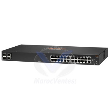 Le switch Aruba 6000 24G 4SFP (R8N88A) propose 24 ports Gigabit 10/100/1000 Mbit/s avec quatre liaisons montantes SFP. Il propose un ensemble de fonctionnalités de couche 2 avec routage statique et absence de licences logicielles requises pour le commutateur.
