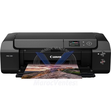 Compacte , l'imprimante Canon Prograf Pro-300 peut produire des tirages photo sans marge.Les encres pigmentaires Lucia Pro assure la longévité de vos tirages (résistance à la lumière et aux gaz de 60 ans) ainsi qu'un rendu avec des couleurs riches et une gamme de couleur étendue pour encore plus de précision et de détails .La série de 10 cartouches se compose de 9 couleurs, dont deux encres noires dédiées (Noir mat et Noir photo) et une encre grise, offre la possibilité de réaliser de magnifiques impressions en noir & blanc, avec des noirs plus riches et des détails plus fins dans les ombres , sur des supports mats ou du papier beaux-arts.Les réservoirs d'encre Noir mat et Noir photo ont leurs propres buses dédiées, vous n'avez donc pas à les changer.Un revêtement d'encre Chroma Optimizer contribue a une meilleure uniformité de la surface sur les supports brillants.L'imprimante Canon Prograf Pro-300 A3+ supporte différents format de papier panoramiques jusqu'à 990,6 mm.Pratique, l' écran LCD couleur 3" affiche le niveau des encres et vous pourrez aussi l'utiliser pour accéder à des fonctions telles que la sélection de votre papier, la maintenance générale de la Pro-300 ou encore la vérification des paramètres réseau.Le logiciel Canon Professional Print & Layout dispose d'une interface intuitive pour vous simplifier le paramétrage d'impression. Il peut être utilisé comme une application autonome ou comme un plug-in pour Canon Digital Photo Professional, Adobe Photoshop, Lightroom ou Photoshop Elements.La Canon Prograf Pro-300 est compatible avec les systèmes d'exploitation Windows, macOS, iOS, Android et Windows Mobile.Côté connexion, vous pouvez imprimer via USB, Ethernet ou Wi-Fi. - Plus d'images (1)