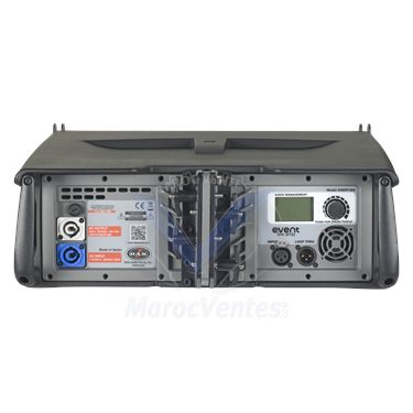 L’EVENT-26A est un système line array auto-amplifié à deux voies, ultra compact et symétrique. Conçu par les ingénieurs de DAS pour obtenir des performances remarquables et une facilité d’utilisation exceptionnelle, le design élégant du caisson en polypropylène offre une grande portabilité et polyvalence. Sa large gamme d’accessoires fait de l’EVENT-26A un allié idéal pour les installations et les événements en direct de taille moyenne et petite.L’EVENT-26A combine deux transducteurs de 6,5″ et un moteur de compression dans un caisson en polymère léger mais robuste. La configuration symétrique en “V” des transducteurs, assure une couverture horizontale consistante de 100° en dessous de 300 Hz. Le moteur de compression M-60 est couplé à un guide d’ondes avancé qui facilite le contrôle de la dispersion verticale ainsi que le couplage précis entre les unités dans la formation des arrays verticaux.Il est doté d’un amplificateur à deux canaux de classe D qui fournit une puissance de crête de 800 W et qui comprend des connecteurs de qualité sur le panneau arrière Neutrik® XLR et powerCON. L’interface DAScontrolTM permet une sélection rapide et facile des préréglages pour les unités dans les arrays. Le DSP 24 bits de dernière génération gère les fonctions X-over, EQ, delay et limiteur. La puissante technologie de filtrage FIR intégrée à l’EVENT-26A fournit une réponse en phase constante qui se traduit par un son cristallin et une clarté exceptionnelle, améliorant ainsi l’expérience d’écoute.La formation simplifiée d’arrays avec EVENT-26A est possible grâce au système d’assemblage innovant FSSTM (Fast Set Splay), développé pour pouvoir sélectionner les angles des systèmes alors qu’ils sont empilés sur leur chariot de transport. Le système d’assemblage en acier inoxydable permet d’assembler des arrays jusqu’à 16 unités sous des angulations individuelles de 0º à 10º.Le renforcement basse fréquence de l’EVENT-26A est assuré par des sous-graves de la même série EVENT-115A (pouvant être suspendue) et EVENT-218A pour empilement au sol.PRINCIPALES CARACTÉRISTIQUES