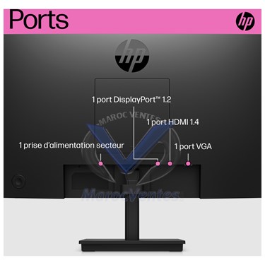Taille de l'écran (diagonale) 21.5"Format de l'image 16:9Résolution (native) FHD (1920 x 1080)12Pas de masque 0,25 x 0,25 mmPixels par pouce (ppi) 102 ppiTraitement de l’écran Anti-refletsLuminosité 250 nitsRapport de contraste 1000:1Taux de contraste de l’écran (dynamique) 8000000:1Courbure PlatType de rétroéclairage Éclairé à la périphériePied amovible YesCadre Micro-bordure sur 3 côtésAngle de vision horizontale 178°Angle de vision verticale 178°Temps de réponse 5ms GtG (avec surcharge)Inclinaison -5 à +23 °CFonctions d'affichage Commandes à l'écranMode faible lumière bleueAntirefletDureté 3HAnti-scintillement Oui (Certifié TÜV)Résolution du panneau 8 bits (6 bits + FRC)Faible Lumière bleue Oui (Certifié TÜV)Montage VESA 100 mm x 100 mmSécurité physique Prêt pour verrou de sécuritéDisplayPort™ 1 port DisplayPort™ 1.2HDCP Oui, DisplayPort™ et HDMIHDMI 1 port HDMI 1.4VGA 1 VGAPoids 3,25 kg9Dimensions minimales (L x P x H) 48,84 x 5.12 x 29,43 cm10Dimensions avec socle (L x P x H) 48.84 x 18.05 x 37.82 cmConsommation électrique 25 W (maximum), 20 W (standard), 0,5 W (veille)Plage de températures en fonctionnement 5 à 35 °CPlage d'humidité de fonctionnement 20 à 80 % d’humidité relativeSpécifications relatives à l’impact sur le développement durable Le matériau d’emballage en pâte à papier moulée à l’intérieur de la boîte est intégralement constitué de matériaux recyclables provenant de sources durables85 % de plastique recyclé post-consommation100 % de plastique en circuit fermé issu des déchets répertoriés dans l’informatique et les télécommunicationsFaible teneur en halogèneContenu de l’emballage ÉcranCâble HDMICarte de garantieFiche d’installation rapideKit de documentationCordon d’alimentation secteurContenu