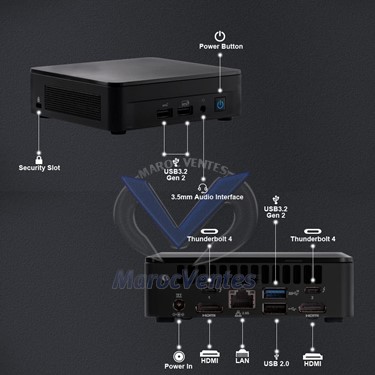 Système d'exploitation : pas de système d'exploitation pour système Barebone. Processeur : 12e génération Intel Core i7-1260P Intel Iris Xe Graphics12 cœurs (4P + 8E), 16 threads, 18 Mo Intel Smart Cache, 35 W TDP P-Cores : 4,8 GHz Turbo; E-Cores : Turbo 3,4 GHz