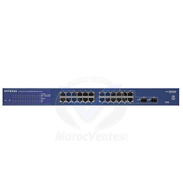Avec la nouvelle famille Smart switch de NETGEAR, vous bénéficiez d'un switch manageable 24 ports gigabit à un prix abordable. Avec ses 24 ports gigabits à 10/100/1000 et ses 2 ports fibres en option, vous obtiendrez un débit de 2000 Mbps en mode full-duplex, vous permettant de connecter des serveurs ayant besoin de beaucoup de puissance pour traiter, par exemple, des images, des contenus multimédia ou de la vidéo. Ce produit est idéal pour mixer sur le même réseau des produits à 10, 100 ou 1000 Mbps car il s'adapte automatiquement, non seulement à la vitesse, mais également au mode duplex grâce à sa fonctionnalité Auto-Uplink. Deux emplacements pour modules GBIC SFP (Small Form Factor) interchangeable à chaud (en option), vous permettront de brancher de la fibre pour augmenter la portée. Vous pouvez aussi facilement visualiser la performance, configurer des ports, mettre en place des agrégats, des VLAN et établir des priorités.