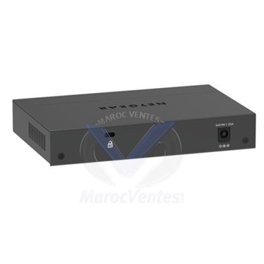Type de périphérique Commutateur - 5 ports - non géréType de boîtier De bureau, fixation muraleSous-type Gigabit EthernetPorts5 x 10/100/1000 (4 PoE+)Power Over Ethernet (PoE)PoE+Budget PoE 63 WPerformances Largeur de bande: 10 Gbps ? Latence: 2.4 µsCapacitéTaille de tampon de paquet: 128 KoTaille de la table d'adresses MAC2 000 entréesSupport de cadre Jumbo 9216 octetsCaractéristiques SOHO, QoS, sans ventilateur, boîtier métallique, WRR, auto-détection par dispositif, auto-uplink (MDI/MDI-X auto), mise hors tension automatique, CoS, prise en charge DiffServNormes de conformité IEEE 802.3az, IEEE 802.1p, IEEE 802.3af, IEEE 802.3at, IEEE 802.3u, IEEE 802.3i, IEEE 802.3xIndicateurs d'étatLien/activité/vitesse, statut du port, PoEExtension/connectivité