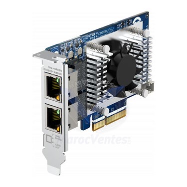 La QNAP QXG-10G2TB est une carte d’extension réseau PCIe Gen 3 (compatible avec le PCIe Gen 2) 10GbE équipée d’un contrôleur Marvell® AQtion AQC113C qui prend en charge jusqu’à cinq vitesses (10GbE / 5GbE / 2,5GbE / 1GbE / 100MbE). La QXG-10G2TB atteint des vitesses de transfert de 10 Gbit/s, ce qui accélère le partage de fichiers et le transfert de données intensif. Hautement écoénergétique et économique, la QXG-10G2TB propose une solution 10GbE d’entrée de gamme de haute performance.Conçue pour votre serveur Qnap ou votre PC (Windows/Linux), cette carte d'extension QNAP QXG-10G2TB va vous permettre d'ajouter deux ports Ethernet 10 Gigabits à votre serveur NAS compatible ou votre PC. A vous les débits élevés et les transferts fluides et rapides.- Carte réseau 2 ports 10 Gigabit Ethernet (100/1000/2.5GbE/5GbE/10GbE)