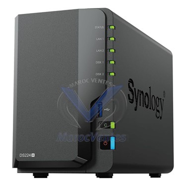 15 watts en fonctionnement complet pour des coûts d'exploitation réduits.Deux baies de disques durs : Le DS224+ est équipé de deux baies de disques durs, ce qui permet une capacité de stockage allant jusqu’à plusieurs téraoctets. Il prend en charge une variété de configurations RAID pour la redondance des données et la performance accrue.Processeur puissant : Alimenté par un processeur Intel Celeron quadricœur 2,0 GHz avec technologie de chiffrement matérielle AES-NI, ce NAS offre des performances de traitement rapides pour la gestion des données et les applications professionnelles.Extensibilité et évolutivité : Le DS224+ prend en charge l’expansion de la capacité de stockage via des unités d’extension Synology, permettant ainsi de répondre aux besoins croissants de stockage au fil du temps.Système d’exploitation convivial : Il fonctionne sous DiskStation Manager (DSM), le système d’exploitation intuitif et convivial de Synology, qui offre une gamme complète de fonctionnalités de gestion des données, y compris la sauvegarde, la récupération, la synchronisation et le partage de fichiers.Sauvegarde et récupération des données : Le DS224+ prend en charge une variété d’options de sauvegarde, y compris la sauvegarde sur site, hors site et dans le cloud, garantissant ainsi la protection des données critiques de l’entreprise contre les pertes et les sinistres.Connectivité réseau avancée : Doté de deux ports Ethernet Gigabit avec prise en charge du Link Aggregation, ce NAS offre des vitesses de transfert de données élevées et une redondance réseau pour une connectivité fiable et sécurisée.Sécurité des données renforcée : Le DS224+ propose des fonctionnalités avancées de sécurité des données, y compris le chiffrement des données AES-NI, les autorisations d’accès granulaires et les mécanismes de sécurité réseau pour protéger les données sensibles de l’entreprise contre les menaces potentielles.En résumé, le Synology DiskStation DS224+ est une solution de stockage réseau fiable, performante et évolutive, idéale pour les petites entreprises et les professionnels à la recherche d’une solution de stockage centralisée pour leurs données critiques.Caractéristiques Techniques