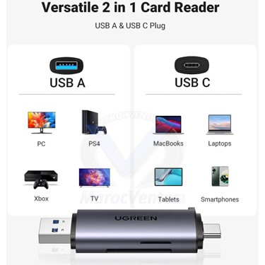 Lecteur de Carte SD Ugreen USB C USB 3.0 2 en 1 Adaptateur de Carte SD en Aluminium (50706)Accélérez vos transferts de données avec le Lecteur de Carte SD Ugreen USB C USB 3.0. Profitez d'une vitesse de transfert allant jusqu'à 5 Gbps, permettant de déplacer 1 Go de photos en seulement 5 secondes. Compatible avec une multitude d'appareils, cet adaptateur 2 en 1 prend en charge deux cartes simultanément, offrant une efficacité accrue. Sa conception en aluminium assure une dissipation thermique optimale et une durabilité exceptionnelle. Facile à utiliser grâce à la technologie Plug & Play, il est compatible avec divers systèmes d'exploitation, du Windows au MacOS en passant par Android. Simplifiez vos transferts de données avec cet adaptateur polyvalent.UGREEN Lecteur de Carte SD Micro SD USB C USB 3.0 2 en 1 Adaptateur