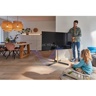 Un support TV au sol pour un placement flexible.