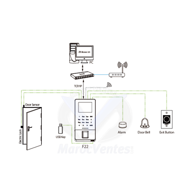 F22 est une Pointeuse et Contrôleur de contrôle d'accès et de contrôle d'accès aux empreintes digitales ultra-fin avec capteur BioID et Wi-Fi, qui offre des performances inégalées avec un algorithme avancé pour la fiabilité, la précision et une excellente vitesse d'adaptation. Le F22 est doté de l'algorithme d'appariement d'empreintes digitales le plus rapide du commerce et du capteur d'empreintes digitales à haute performance et à haute qualité d'image ZK.