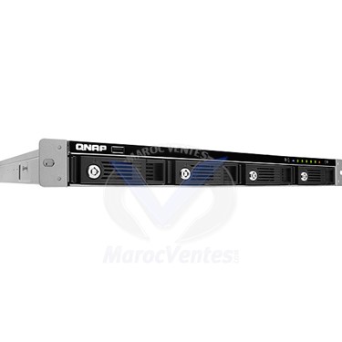 Processeur Dual-core Intel® Celeron 2.41GHz (jusqu'à 2.58GHz)Mémoire: 1 Go de SDRAM DDR3L (1 x 1 Go)Machines à sous: 2 SODIMM (Max: 8 Go)NOTE: 1. Lors de l'installation de deux modules de mémoire, s'il vous plaît assurer qu'ils sont de la même taille et idéalement utiliser le même type de RAM pour les deux emplacements de mémoire.2. Pour les informations d'installation du module de RAM et modèles NAS compatibles, s'il vous plaît consulter le Guide d'installation QNAP module RAM.512 Mo de mémoire FlashDur interne 4 x 3.5 "ou 2.5" SATA 6Gb / s, disque dur SATA 3Gb / s ou SSDNOTE:1. Le système est livré sans disque dur.2. Liste de compatibilité DDPlateau du lecteur 4 plateaux remplaçables à chaud et verrouillablesInterface réseau 2 ports RJ45 Gigabit EthernetPorts 4 x USB 3.0 (à l'arrière)1 x USB 2.0 (avant)1 x HDMI1 x console (la maintenance du système)Indicateurs LED Statut, LAN, USB, disque dur 1, 2 HDD, HDD3, HDD4Boutons d'alimentation, USB One-Touch-Copy, réinitialiserAlarme avertissement système BuzzerFacteur de forme 1U, montable en rackDimensions 44 (H) x 439 (W) x 499 (P) mm1,73 (H) x 17,28 (W) x 19,65 (D) poucesPoids Poids net: 7,63 kg (16,82 lb)Poids brut: 11,60 kg (25,57 lb)Consommation électrique (W) en veille du disque dur: 21.03WEn fonctionnement: 38.01W(avec 4 x 2 To de disque dur installé)Température 0-40˚CHumidité 0 ~ 95% d'humidité relativeAlimentation Entrée: 100-240V AC, 50 / 60Hz; Sortie: 250WFan 2 x ventilateur de refroidissement silencieux (4 cm, 12V DC) - Plus d'images (3)