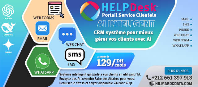 Systéme intelligent qui parle à vos clients en utilisant l’IA. Envoyez des Prix/vendre Faire des Affaires pour vous.Integration Ai Maroc