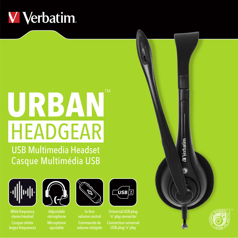 Le casque multimédia USB de Verbatim est équipé de circuits d'attaque du haut-parleur en Neodymium offrant une qualité audio exceptionnelle ! Le module de commande inclus permet de régler le volume à votre guise et de couper le son du microphone si votre conversation est interrompue. Le microphone est également entièrement réglable. Vous pouvez le déplacer facilement pendant son utilisation.