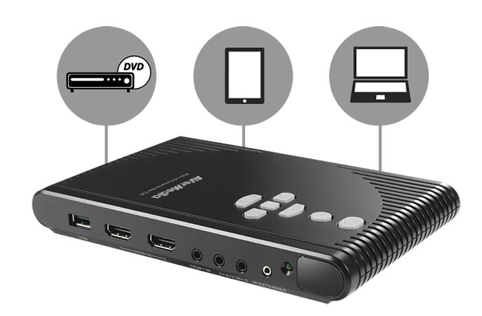 Le boîtier convertisseur à entrées et sorties multiples Converter Box 510 est un hub central qui peut réunir tous vos appareils audio et vidéo. Branchez simplement votre ordinateur portable, tablette, lecteur Blu-ray, etc. sur ce hub. En quelques minutes, tous les contenus vidéo seront disponibles en qualité HD intégrale.