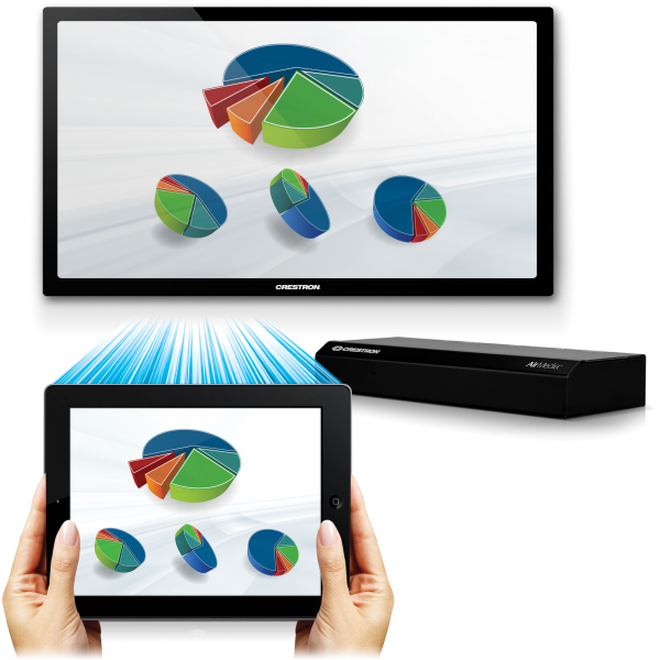 Le Crestron Air Media AM-101 remplace la passerelle de présentation sans fil AM-100 pour toutes les commandes futures. L'AM-101 inclut désormais de nouvelles fonctionnalités pour le support iOS que nous pouvons démontrer via des démonstrations en direct prévues avec le contact de l'équipe des systèmes de salle de conférence: sales@conferenceroomsystems.com. L'AM-101 Air Media inclut toutes les fonctionnalités de présentation sans fil pour plusieurs plates-formes présentes dans l'AM-100, notamment la prise en charge de PC, Mac, Android et iOS. L'AM-101 Air Media inclut également une nouvelle fonctionnalité spéciale concernant les appareils iOS (qui ne peuvent pas être affichés publiquement avant qu'Apple et Crestron ne finalisent les détails légaux), mais nous pouvons partager ces informations lors d'une démonstration en direct. Alors, demandez une démonstration en direct du nouveau Crestron Air Media AM-101 et apprenez-en plus sur ce formidable appareil de présentation sans fil. Avec AirMedia ™, tout le monde peut entrer dans une pièce et présenter sans fil des documents PowerPoint®, Excel®, Word et PDF, ainsi que des photos, à partir de son appareil mobile iOS® ou Android ™ personnel. Les ordinateurs portables MacBook® et PC peuvent également être connectés de manière transparente, facilitant et accélérant les présentations depuis la plupart des appareils. Il n'y a pas de fils à raccorder, pas de réglages compliqués à configurer et aucun système AV ou système de contrôle n'est requis. Connectez-vous simplement via le réseau Wi-Fi® local et commencez à partager du contenu depuis votre appareil portable.