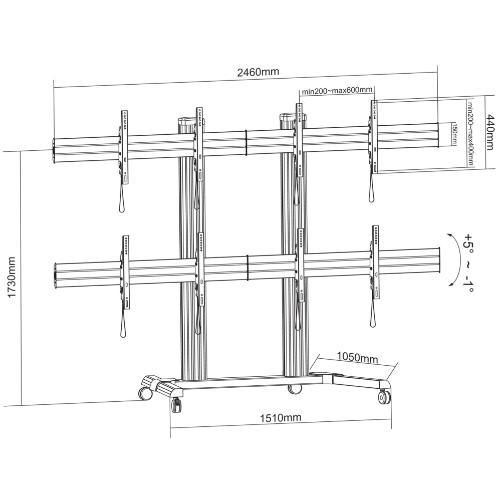 VESA max pris en charge : 600x400 mm; Inclinaison des étriers : -1° / +5°; Dimensions de base : 1510x1050 mm; Couleur : argen