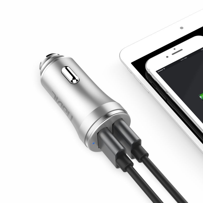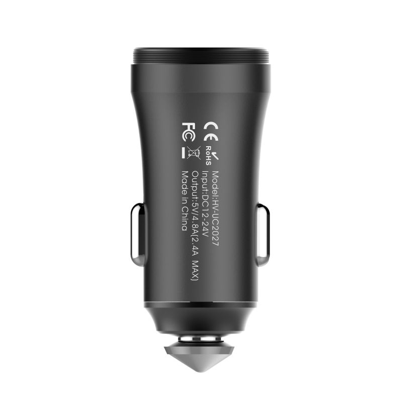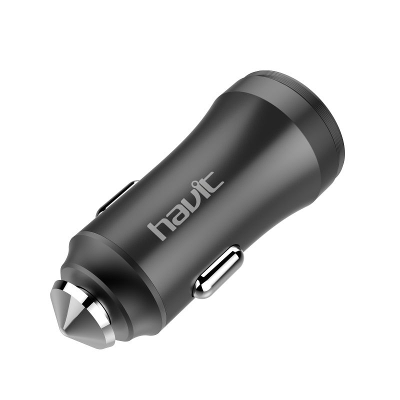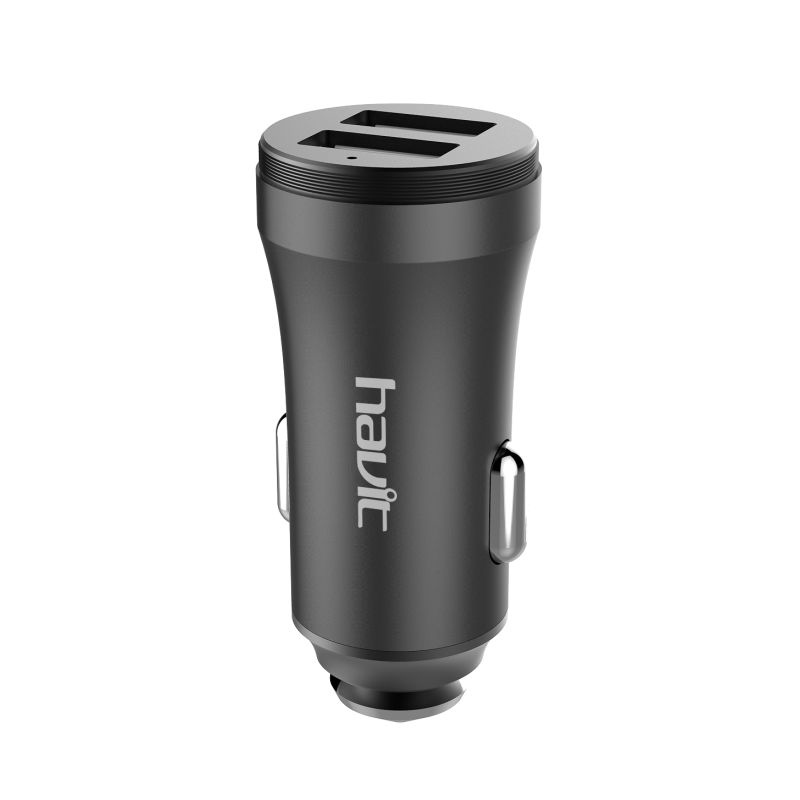 HAVIT HV-UC2027 - Chargeur allume-cigare automatique (HV-UC2027) 2USB dans un boîtier entièrement métallique givré.