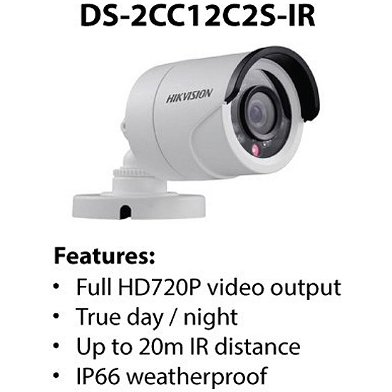 Hikvision DS-2CC12C2S-IR - Caméra Bullet HD-SDI IR 20m HD 720p IP66