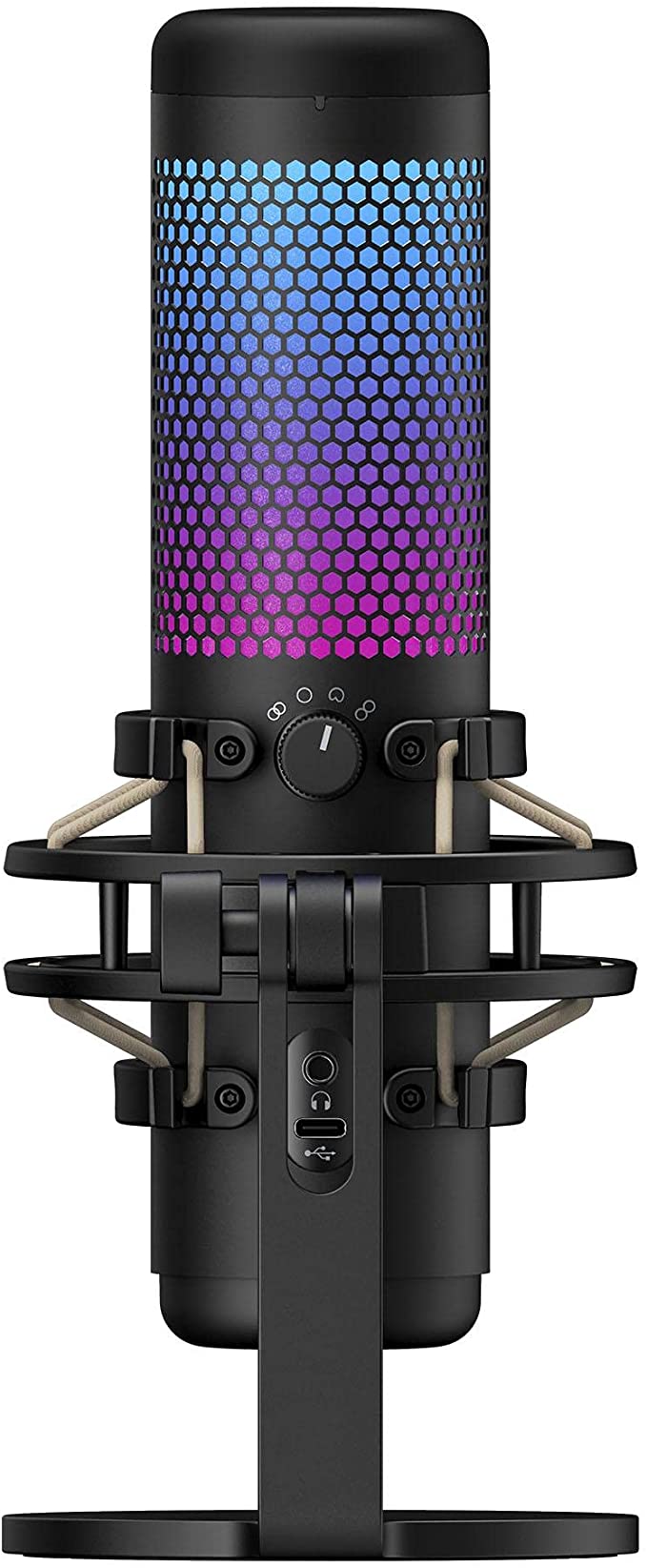 The HyperX QuadCast™ S is a USB condenser microphone that both sounds great and looks great. The supremely stunning RGB lighting and dynamic effects will add style and flair to any stream or setup, and is customizable via HyperX NGENUITY software. The QuadCast S is an all-inclusive mic, featuring an anti-vibration shock mount to help quiet the rumbles of daily life and a built-in pop filter to muffle plosive sounds. Instantly know your mic status with the LED indicator, and simply tap-to-mute to avoid awkward broadcasting accidents. With four selectable polar patterns, this mic’s prepared for nearly any recording situation and also features a gain control dial to quickly regulate input sensitivity. The included mount adapter fits 3/8” and 5/8” thread sizes, compatible with most stands. QuadCast S is certified by Discord and TeamSpeak™ so you can ensure that your microphone is broadcasting loud and clear for all your followers and listeners, and you can also monitor your mic in real time using the convenient headphone jack on the back of the mic. It’s multi-platform compatible, so you can deliver quality sound output whether you’re connecting to a PC, PS4™, or Mac®.