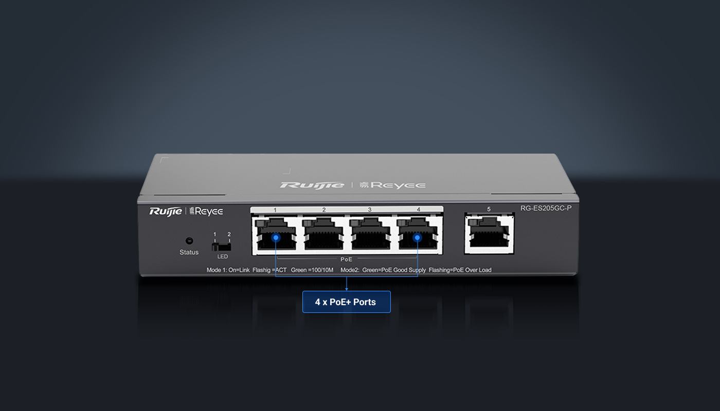 Ruijie RG-ES205GC-P - 5 Ports Gigabit Smart POE Switch 5 Gigabit RJ45 Ports Avec 4 Ports POE Manageable