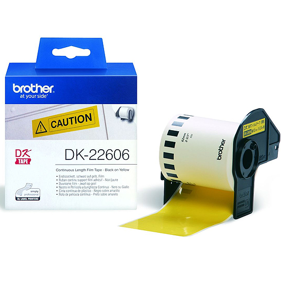 Brother DK-22606 - Ruban Film Continu Noir sur Jaune 62 mm de Large