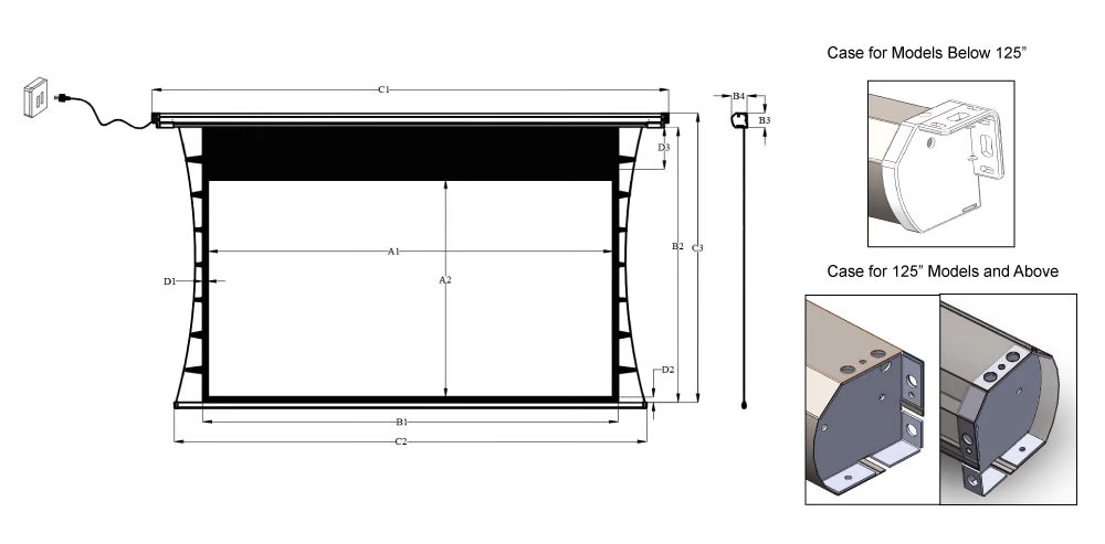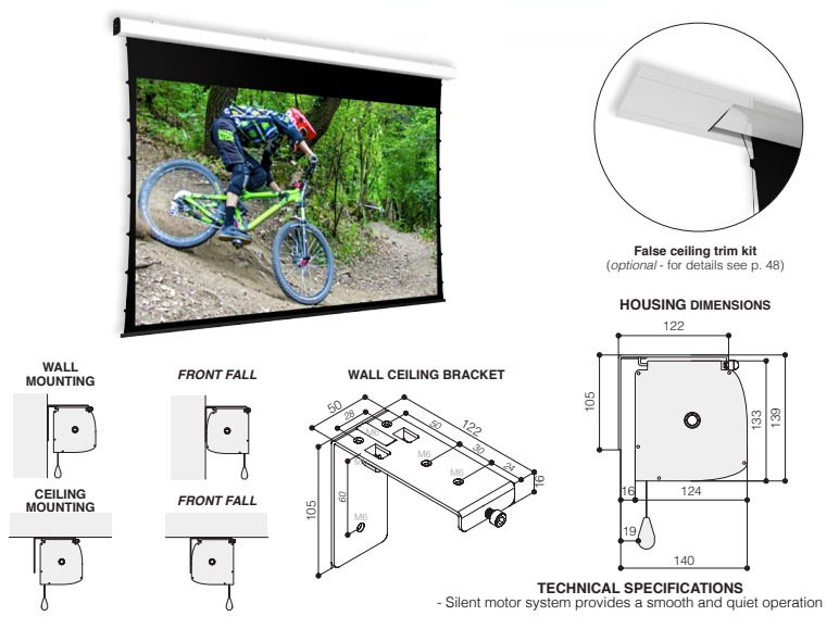 Écran de type mural à moteur électrique dédié pour les installations professionnelles : Salles de conférences. Salles de séminaires, Amphi, Auditorium.
