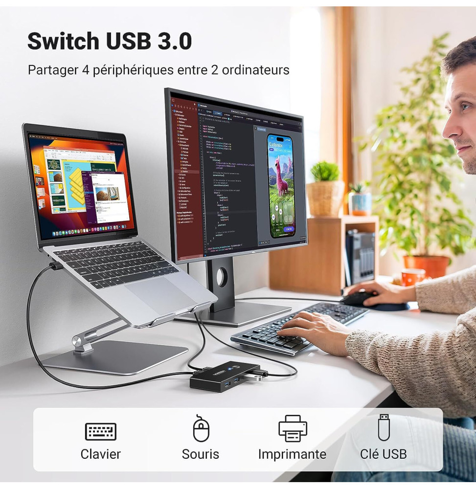 Ugreen Switch Commutateur 2x4 USB 2.0