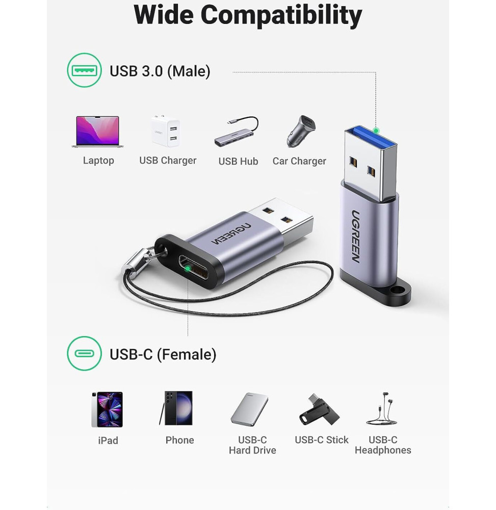 Ugreen 50533 - Ugreen Adaptateur USB 3.0 vers USB-C Femelle GRIS
