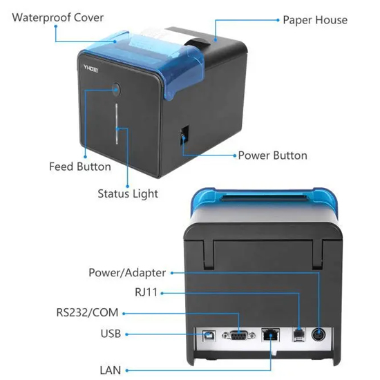 Imprimante Thermique de Reçus QR et D'Etiquettes 80MM