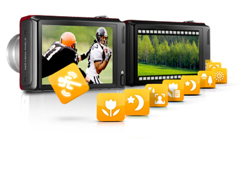Caractéristiques supplémentaires | Enregistrement audio, impression directe, compatibilité USB 2.0, commande par écran tactile, haut-parleur intégré, date/heure d'impression, support DPOF, réglage de la netteté, rotation numérique de l'image, prise en charge de PictBridge, stabilisation numérique de l'image, redimensionnement d'une image, réglage de saturation, technologie de détection de la scène, retouche visage, Face Detection AF/AE, Enregistrement de film 720p HD, Reconnaissance faciale intelligente, système anti-yeux rouges intégré à l'appareil photo, réglage du contraste, détection des visages, double système de stabilisation d�image, équilibre du contrast automatique, prise en charge Exif Print, technologie de détection du clignement des yeux, technologie Smile Detection |