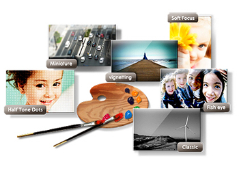 Plus besoin de logiciel de retouche photo pour réaliser des effets originaux sur vos créations! Grâce à la fonction effets spéciaux optiques et colorimétriques, vous pouvez ajouter une touche artistique et créative à vos photos en toute simplicité. Par exemple, l’effet Miniature donne un effet « maquette » à vos photos, l’effet Vignettage ajoute un halo sombre sur les bords de l’image, l’effet Fish-eye donne une impression visuelle ultra grand angle. L’effet Esquisse quant à lui rend une impression de dessin au crayon. Vous pourrez également découvrir l’effet Onirique, Pointillisme et Antibrouillard. Alors soyez créatifs!