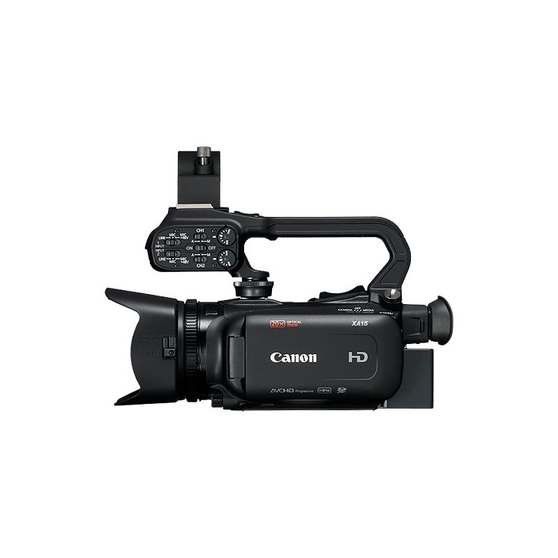 Caméscope Compact XA15 Professionnel Full HD SDI avec BP-820 Capteur CMOS natif 1920 x 1080, 1 / 2,84", Objectif zoom 20x, Processeur d'image Canon Digic DV 4, Stabilisation d'image dynamique, Écran de 3" à écran tactile OLED, Commandes manuelles de l'appareil photo, 2 x XLR avec niveaux audio manuels / automatiques, SDI, Mini-HDMI, sorties composites, 2 cartes SD / SDHC / SDXC, Amp-Hours 1780 mAh, Tension de sortie maximale 7.4 VDC, Chimie Lithium-Ion