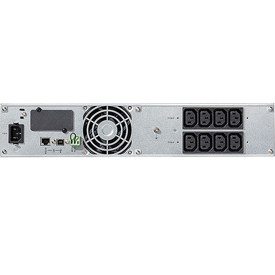 Onduleur CA 230 V 1050 Watt 1500 VA RS-232, USB connecteurs de sortie 8 2U noir Puissance apparente (VA) 1 500 VA Puissance active (W) 1 050 W Technologie ligne interactive SNMP/Management en option Type de boîtier rack Hauteur
