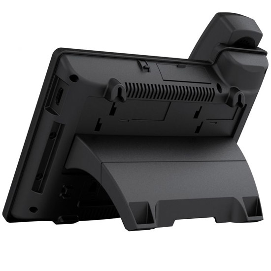 Elégant téléphone VoIP de bureau avec un grand écran tactile de 7 pouces, deux ports Gigabit Ethernet et alimenté par PoE.