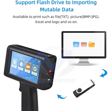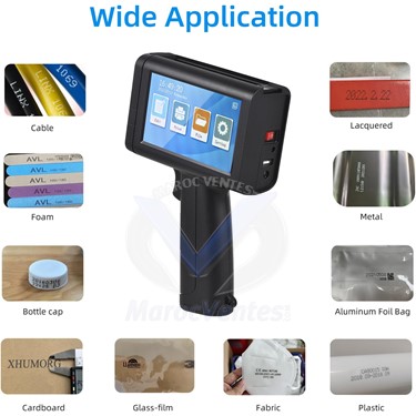 • Imprimante à jet d'encre intelligente.  Elle peut imprimer des numéros, des codes-barres, des logos, des marques, des mots, des dates et des étiquettes sur du carton, des câbles, du plastique, des tuyaux, des composants électroniques en aluminium, etc. Idéal pour la fabrication, la vente au détail, l'entrepôt, la logistique, l'atelier de conception et les T-shirts. Atelier de bricolage.