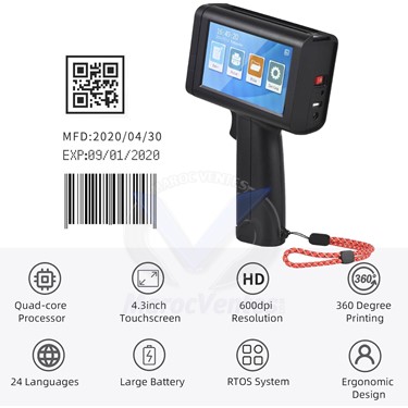 Imprimante à Jet d'encre Portable 600DPI, pour Codes à écran Tactile de 4,3" avec Cartouche d'encre à séchage Rapide