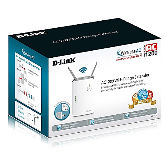Le répéteur DAP-1620 de D-Link se branche sur une prise murale et étend votre réseau Wi-Fi existant. Petit, puissant et d'une grande simplicité d'utilisation, il prend en charge des vitesses sans fil AC allant jusqu’à 1200 Mbits/s. Discret, il joue un rôle essentiel pour vous faire profiter d'une connexion sans fil fiable en permanence. Pratique, il intègre également un port Gigabit Ethernet.