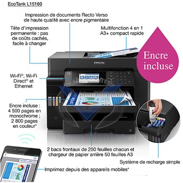 Imprimante ECOTANK L15160 Multifonction 4 en 1 Recto Verso Automatique A3+ (copy scan print fax)