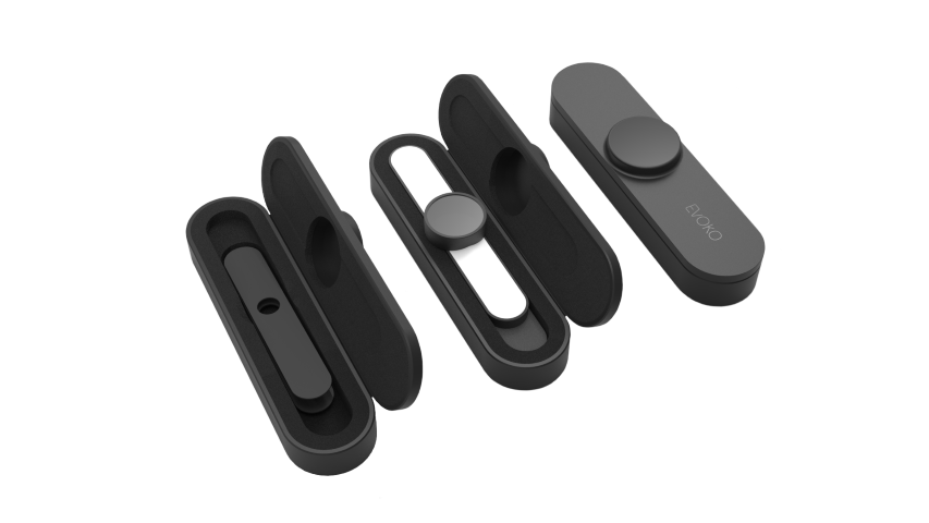 Evoko Groupie est une lentille d'éclairage grand angle portable que vous pouvez connecter à n'importe quel appareil pour faciliter les appels de vidéo conférence.