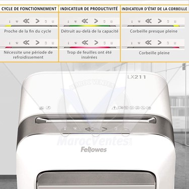 Caractéristiques TechniquesLa nouvelle génération de destructeur offre une productivité optimale et une technologie anti-bourrage unique.La technologie interactive Intellibar™ fournit un retour d'information sur les performances du destructeur pendant son utilisation, prévenant les interruptions en indiquant lorsque la corbeille est presque pleine ou quand le cycle de fonctionnement est presque atteint.La technologie Safesense® offre une plus grande tranquillité d'esprit et sécurité lors de l'utilisation, la technologie Sleep mode met le destructeur en veille automatiquement lorsqu'il n'est pas utilisé.La coupe microparticules détruit 1 feuille A4 en plus de 2000 particules (2x12mm DIN P-5)Capacité de passage de 15 feuilles et corbeille extractible de 23 litres.Détruit plus de 1000 feuilles en 20 minutes de cycle de fonctionnement.Technologie Anti-bourrages: 100% Sans BourragesType de chargement: À chargement manuelType de corbeille: Bac extractibleCapacité de la corbeille/bac: 23 LTaille de coupe: 2 x 12 mmType de coupe: Microshred - Plus d'images (5)