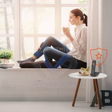 Ecran rétroéclairé couleurAffichage grands caractèresMenu ergonomique basé sur l’utilisation d’icônesRépertoire de 200 noms et numérosPlug & PlayEco DECT pour plus d'autonomie en fonction de la distance combiné - basePrésentation du nom et du numéroMains libres : haut-parleur haute qualité sonore - son HSPLongue autonomie : 17h en communication et 13 jours en veilleAffichage de l'heure, de la date, du niveau de batterie, de la durée de la communicationClavier rétro-éclairéTouche secret : permet de couper le micro afin de ne pas être entendu par votre interlocuteur.20 sonneries au choixRéglage du volume sur 5 niveauxFonction réveilFonction liste noireRèglages des heures d'accès (exception possible pour contacts VIP)Montage mural possiblePlug & Play : installation facileEvolutif jusqu'à 4 combinés par baseTechnologie Eco-DECTBatterie : 2 x AAA NiMHCouleur : noirDAS : 0.07 W/KgCompatible avec toutes les box ADSLRépondeur : 30 minutes d'enregistrementAccès au répondeur à partir d'un téléphone mobile et d'un code, ou via n'importe quel poste DECT du systèmePoids : 118 Grammes - Plus d'images (3)
