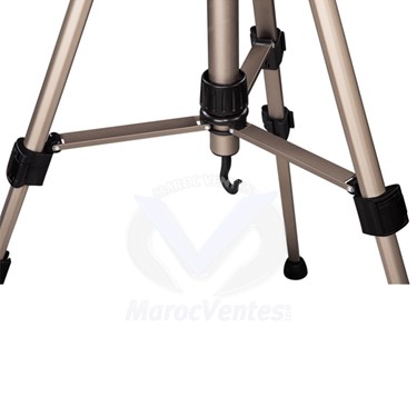 - Crochet permettant de lester le trépied en cas de vent fort ou sur un terrain irrégulier