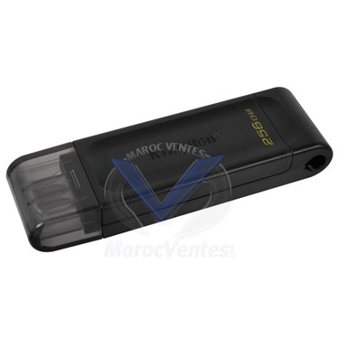 La clé USB Kingston DataTraveler 70 de 256 Go offre un stockage portable et léger pour vos appareils USB-C. Elle est compatible avec les ordinateurs portables, les tablettes et les téléphones. Avec des vitesses de transfert jusqu'à 10 fois plus rapides que l'USB 2.0, cette clé vous permet d'élargir facilement vos capacités de stockage au quotidien. Son design simple et sans capuchon facilite son utilisation.Kingston DataTraveler 70 est une clé USB USB-C portable et légère qui dispose de vitesses USB 3.2 Gen 1. Il est conçu pour être utilisé avec des appareils USB-C compatibles tels que les ordinateurs portables, ordinateurs portables, tablettes et téléphones. Avec des capacités allant jusqu'à 256 Go, le DataTraveler 70 est plus que capable d'étendre votre stockage pour un usage quotidien.Caractéristiques Techniques