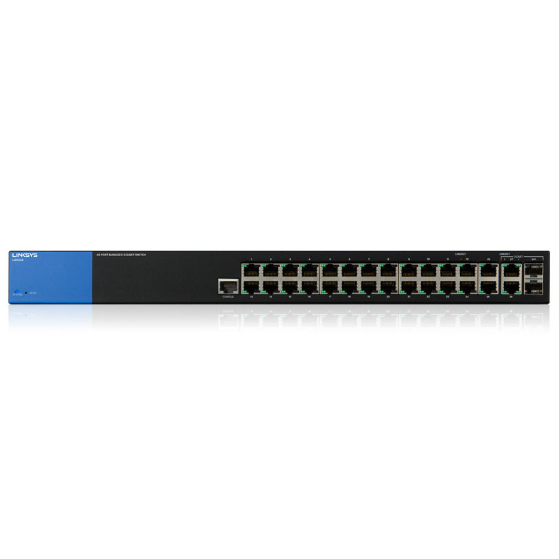 Le Switch Gigabit manageable 24 ports (+4) Linksys LGS528-EU offre des fonctionnalités et des capacités étendues, conçues pour optimiser votre productivité et améliorer votre efficacité. Les switches Linksys vous permettent de profiter des fonctionnalités des commutateurs gérés, telles que la qualité de service de base (QoS), la sécurité et la disponibilité.