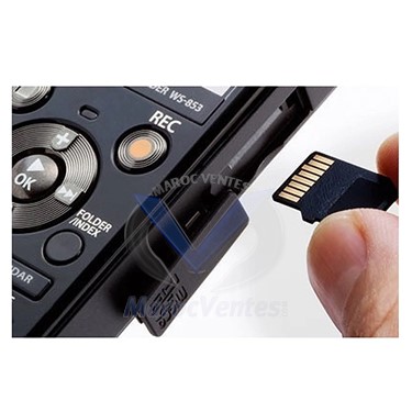 L'Olympus WS-853 est un enregistreur vocal numérique d'une capacité de 8 Go, qui peut être augmentée grâce à son lecteur de carte microSD pouvant augmenter la capacité de mémoire jusqu'à 32 Go.