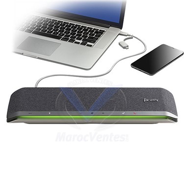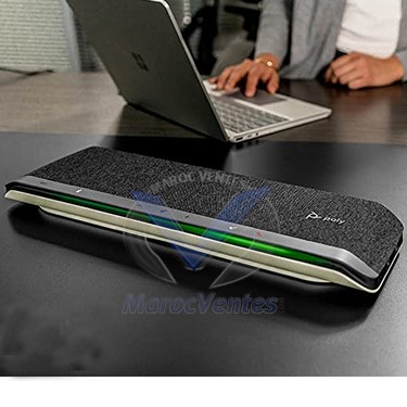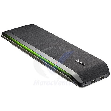 1. Deux haut-parleurs hautes performancesLes collaborateurs restent productifs grâce à deux enceintes de musique hautes performances et de grande taille, pour une expérience multimédia immersive.2. Ensemble orientable de six microphonesPendant la conférence, l'attention se porte sur les voix et non sur le bruit de fond grâce aux six microphones orientables qui facilitent la réduction de l'écho et du bruit.3. Bouton Teams dédiéLes versions Microsoft Teams facilitent la collaboration et la communication grâce à un bouton Teams dédié pour un accès instantané à l'application Teams.4. Connectivité USB et BluetoothProfitez d'une connectivité en toute simplicité : connectez-vous sans fil via Bluetooth® ou en filaire via un câble combiné USB-A et USB-C5. Touche programmableLes utilisateurs peuvent facilement déconnecter leurs périphériques Bluetooth® du haut-parleur à l'aide de la touche programmable.6. Voyants d'étatVérifiez l'état de l'appel, même de loin, grâce à deux barres de voyants bien visibles. Les voyants peuvent également servir d'indicateur de niveau vocal ou d'indicateur visuel de localisation et de suivi de l'interlocuteur (doit être activé)7. Ports de charge de smartphoneDavantage de personnes peuvent recharger leurs périphériques pendant une réunion : deux ports USB permettent de charger jusqu'à deux smartphones en même temps.8. Entrée de caméra USBConnectez une caméra vidéo USB pour bénéficier de l'audio et de la vidéo avec un seul câbleFiche Technique