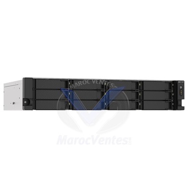 Le NAS rackable 2U TS-1273AU-RP-8G de QNAP propose 12 baies 2.5"/3,5" et un contrôleur LAN 2.5 GbE. Il embarque un processeur AMD Ryzen V1500B (4 cœurs/8 threads) qui est en mesure de booster les performances des machines virtuelle. Il est par ailleurs évolutif avec jusqu’à 32 Go de mémoire DDR4 et propose deux emplacements PCIe 3.0 4x pour ajouter des fonctionnalités via des cartes d'extensions.Le TS-1273AU-RP est également doté d'un bloc d'alimentation redondante garantissant que le système reste en service le plus longtemps possible. Le matériel de pointe intégré aux solutions logicielles complètes fait du TS-1273AU-RP le choix préférentiel pour répondre aux applications et aux tâches exigeantes en termes de ressources.UNE PARTIE HARDWARE HAUTES PERFORMANCES