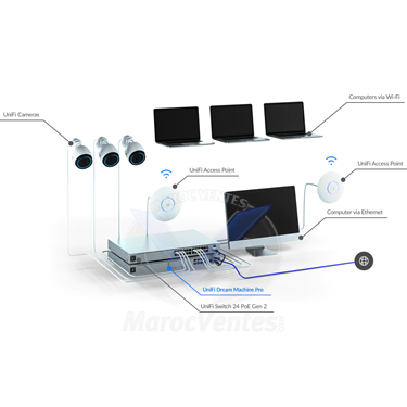 Le contrôleur UniFi intégré Permet de gérer tous les périphériques de la gamme UniFi, cartographier le réseau et gérer rapidement le trafic.Switch Gigabit intégré
