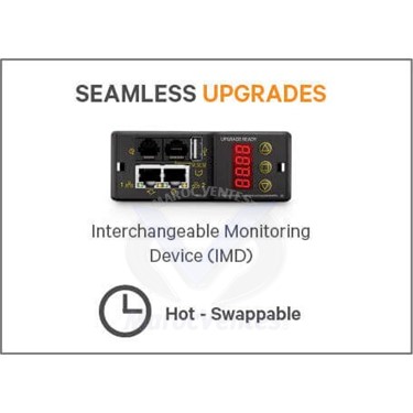 • Surveillance Surveillance de la puissance d'entrée. Surveillance de l'environnement via des capteurs à distance en option. Connectivité Ethernet en guirlande. Affichage LED local haute visibilité.